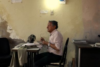 el costurero. Ein Schneider an einer alten Naehmaschine
